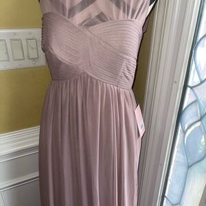 NWT BIRDY GREY Mauve Ryan Sleeveless Empire Waist Pleated sheer Gown M 4…