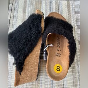 NWT BIRKENSTOCK NAMIKA TEDDY WEDGE IN BLACK Size US 8 EU 39