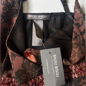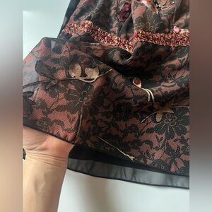 NWT BISOU BISOU DARK FEMININE SHEER EMBROIDERED TOP