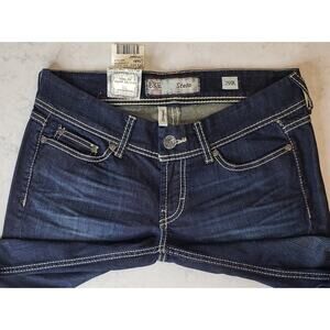 NWT BKE Denim Stella Slim Fit Super Low Rise Straight Leg Jeans Dark Wash Blue
