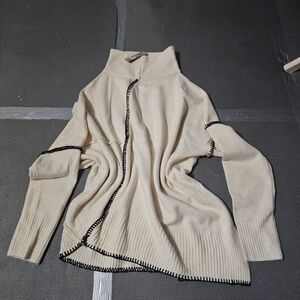 NWT BKE buckle asymmetric oversized turtleneck sweater. Cream with black stitching. Size medium. Retails for $59.99