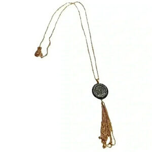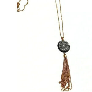 NWT BLACK AND GOLD GLITTER STONE TASSEL NECKLACE