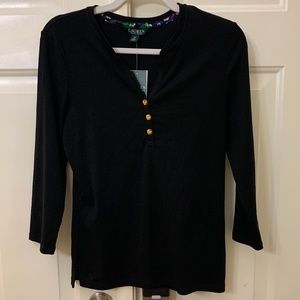 NWT - BLACK CASUAL TOP WITH GOLD BUTTONS
