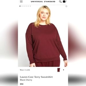 NWT BLACK Core Terry Sweatshirt Universal Standard 18 (M)