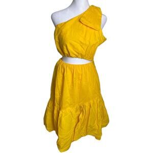 NWT BLACK HALO DRESS ATLAS YELLOW CUT OUT TIERED BOW ONE SHOULDER COTTAGECORE