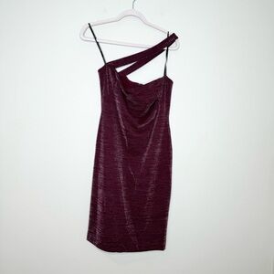 NWT BLACK HALO Vintea Metallic One Shoulder Crimson Mini Dress