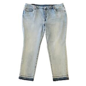 Style: super cute raw hem lighter wash jeans, very stretchy, ankle length, button fly