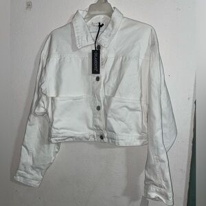 NWT BLANKNYC Cropped Denim White women's 100% cotton Jacket oversize