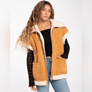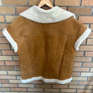 NWT BLANKNYC Faux Suede and Sherpa Short Sleeve Vest in Biscotti Size Small