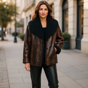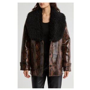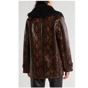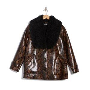 NWT BLANKNYC Snakeskin Print Faux Leather Jacket with Faux Fur Trim Small