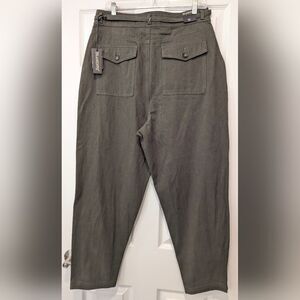 NWT BLANKNYC Womens Pleated Pant Self Tie olive army green cotton cropped sz 31