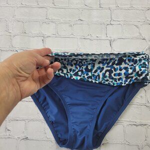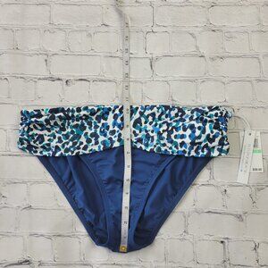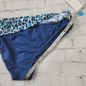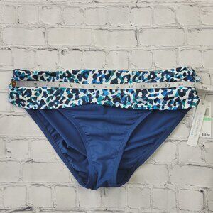 NWT BLEU BY ROD BEATTIE Kore Sarong Hipster Bikini Bottoms Navy Blue Animal Prnt