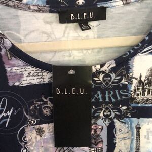 NWT B.L.E.U. Paris three-quarter sleeve navy top L