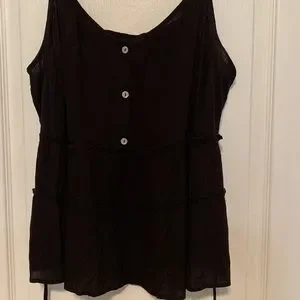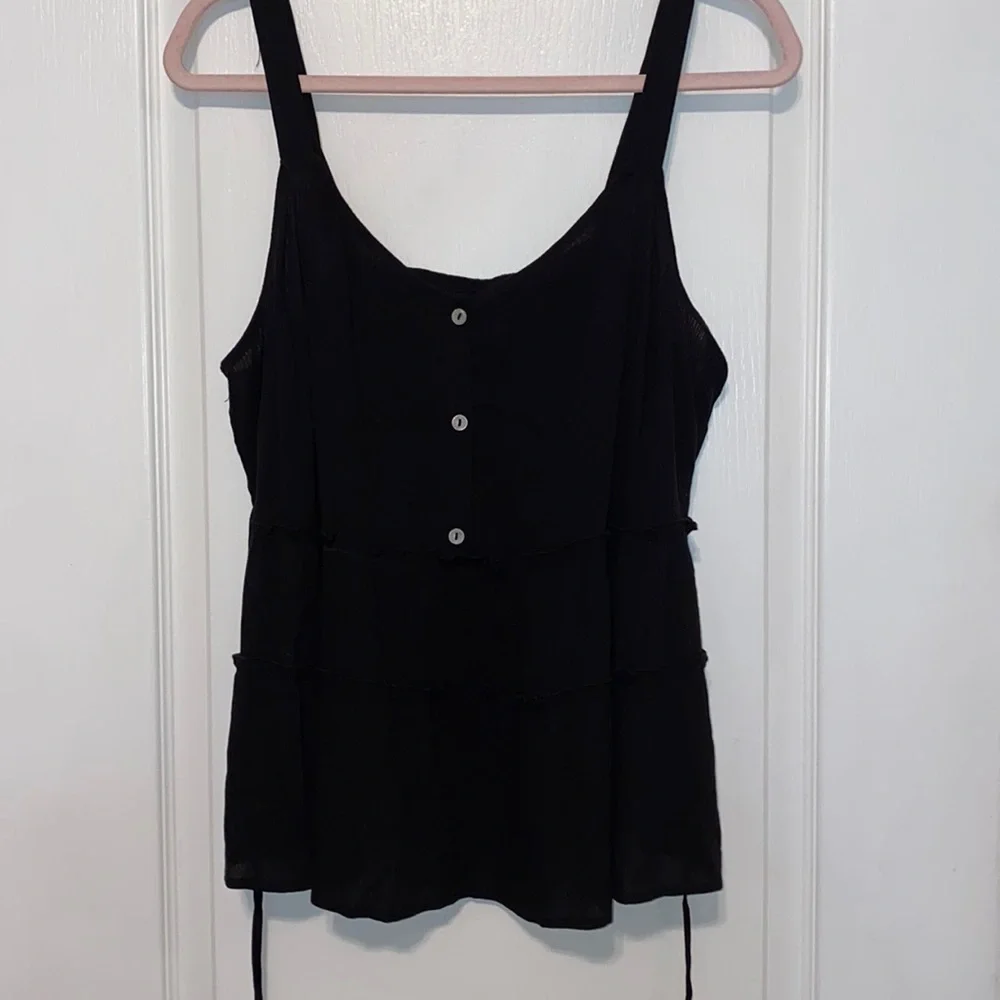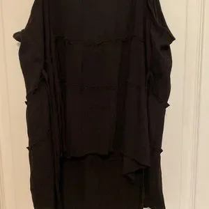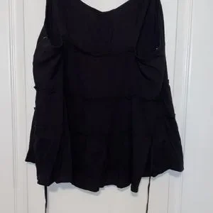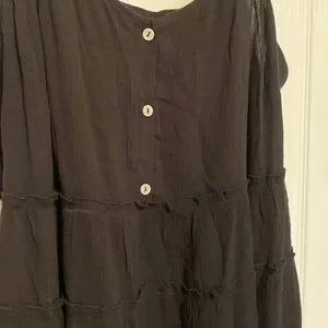 Black ruffle tiered top with buttons and attached wrap.