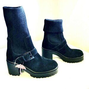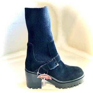 NWT BLONDO Remi Waterproof Blk Suede Knit Platform Ankle Bootie Block Heel 6.5