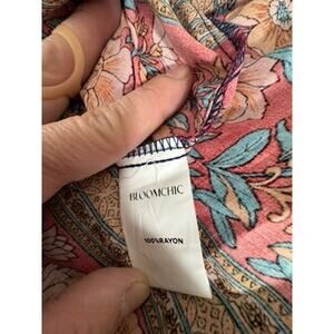 The NWT "BLOOMCHIC" Summer Bohemian Full Length Flutter Dress in size 12 is a whimsical and feminine piece perfect for the summer season. With a flattering V-neckline and a fit & flare style, this dress features a beautiful floral pattern in shades of blue, making it ideal for travel, parties, or casual outings. Made from rayon, this long dress exudes a bohemian theme that captures the essence of a gypsy fairy character, making it a standout addition to any woman's wardrobe. Ideal for those who love a carefree and magical aesthetic....51"T x 16.5" W x 18.5 Pit to Pit