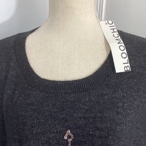 NWT BLOOMCHIC WOMAN PLUS SZ 26 CHARCOL GRAY SWEATER TUNIC SEQUINS SNOWFLAKE
