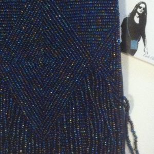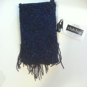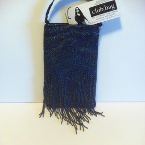 NWT BLUE AND BLACK BEADED CELL PHONE BAG