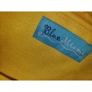 NWT BLUE MIAMI Handbag Purse Straw Woven Yellow Wooden Handles. Snap closure, 2 wooden handles, inner zip pocket