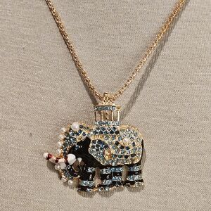 NWT BLUE RHINESTONE ELEPHANT STATEMENT NECKLACE