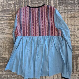 Add a stylish touch to your little girl's wardrobe with this NWT Hayden Girls Tunic in size 13/14. The blue geometric pattern with sparkling spangles adds a pop of color and fun to any casual outfit. The long sleeves and tunic style make it perfect for cooler weather, while the comfortable fit and soft material ensure your child stays cozy all day long. This tunic is perfect for any occasion, whether it's a day out with friends or a family gathering. The Hayden brand ensures quality and durability, making it a great investment for your child's wardrobe. Make your little girl stand out with this unique and fashionable tunic.