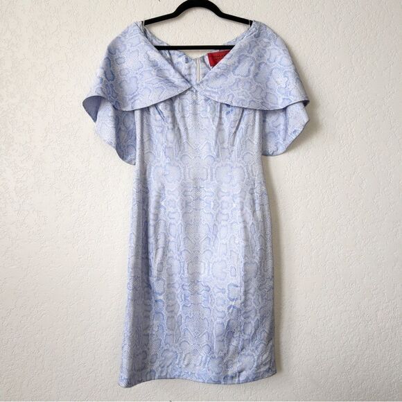 NWT B Michael America Red Collection Blue Draped Collar Snakeskin Dress Size 10