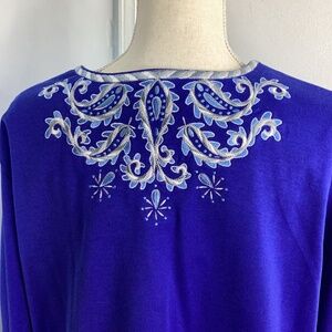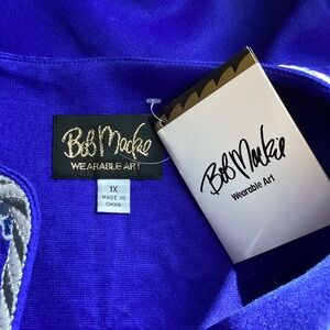 NWT BOB MACKIE WEARABLE ART PLUS 1X ROYAL BLUE EMBROIDERED TUNIC SWEATER ARTSY