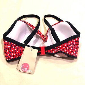 NWT BODEN Alicati Cup-size Ruched Twist Bikini Top Red\Black Polka-Dots 32D