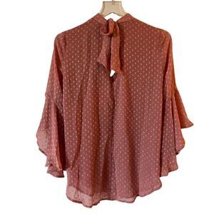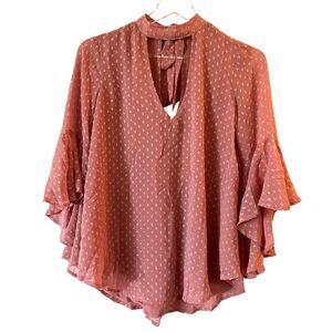 NWT BOG Band of the Free Bohemian Blouse Top Bell Sleeves V Neck Keyhole back XS