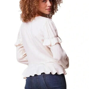 NWT B.O.G. Collective Sandy Cream Ruffle Long Sleeve Button Blouse Lace Sz XS