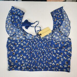 NWT BOG Collective Women's Blue Floral Crop Adjustable Top.