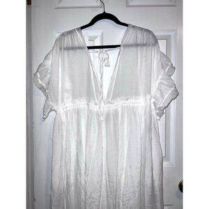 NWT BOHO BEACH HUT White Flowy Long Maxi Gauze Boho Beach CoverUp Dress Pockets