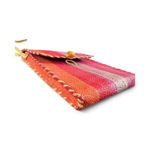 This is a brand new with tags (NWT) boho straw crossbody bag featuring a vibrant, multicolored design.