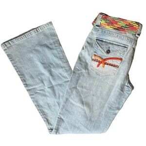 Multi colored woven belt Factory distressed Smoke free home Light blue