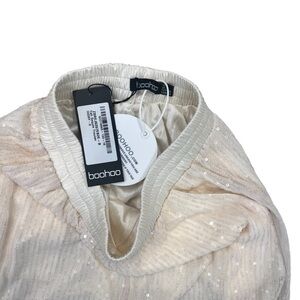 NWT BOOHOO Ivory Sequin Pants Pull On Pockets Small Tall