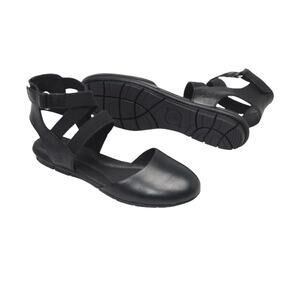 NWT BORN Breck Crisscross Ankle Strap Flat Sandals Leather Black Women’s Size 9
