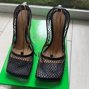 BRAND NEW BOTTEGA VENETA MESH BLACK MESH PUMP WITH GOLD CHAIN HARDWARE.