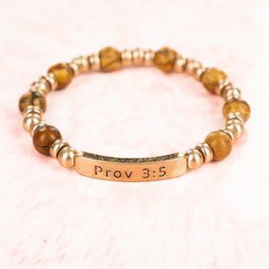 * NWT BOUTIQUE* NATURAL GOLDTONE 'PROV 3:5' BEADED STRETCH BRACELET