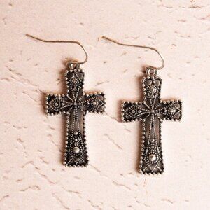❤️NWT BOUTIQUE SILVERTONE ORNATE CROSS EARRINGS