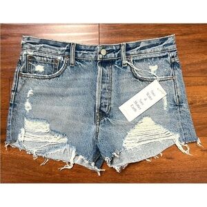 NWT BOYISH 90s High Rise Distress Denim Button Fly Raw Hem Cutoff Jean Short 27