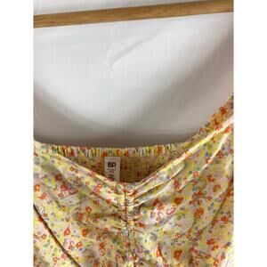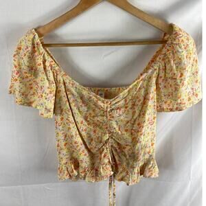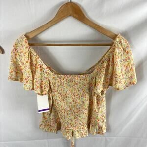 BP. Cinched Ruffle Crop Top Yellow Floral Size XS cinched front with tie smocked back new