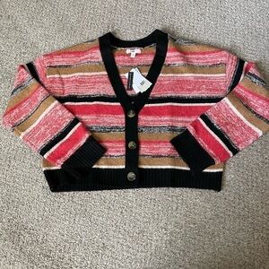 NWT BP. Crop Recycled Blend Knit Cardigan In Black Marl Striped V-Neck Size M