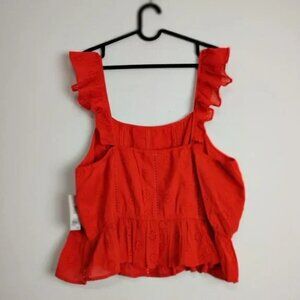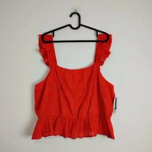 NWT BP Eyelet Ruffle Peplum Crop Tank Top 1XL Orange Red Cotton Summer Chic