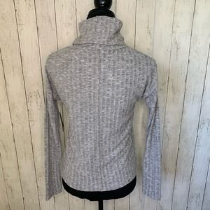 Super soft, lightweight heather gray ribbed BP cowl neck sweater.