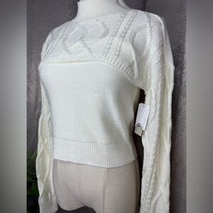 NWT BP. Nordstrom Cowl Neck Cable Knit Crop Sweater Set Ivory Sz Small