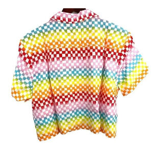 NEW BP Women Size XXS Rainbow Arcade Check Cropped Boyfriend Shirt