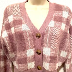 NWT BP Nordstroms Emma Plaid Short Cropped Cardigan Purple/Mauve Sweater