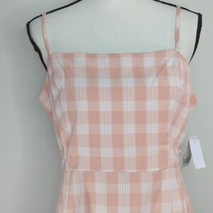 BP. Square Neck Strappy Coral & White Gingham Dress (LARGE)