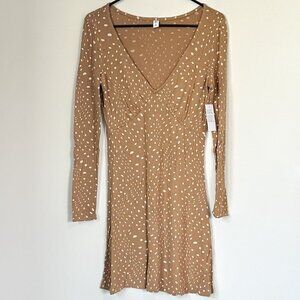 NWT BP Tan Polka Dot Long Sleeve V-Neck Sustainable Dress - Size: S