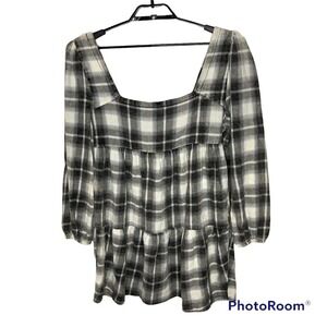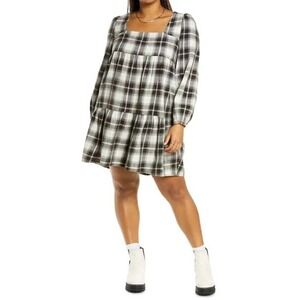 NWT BP Womens Marley Plaid Mini Dress Size Medium Irovy and Black Long Sleeve